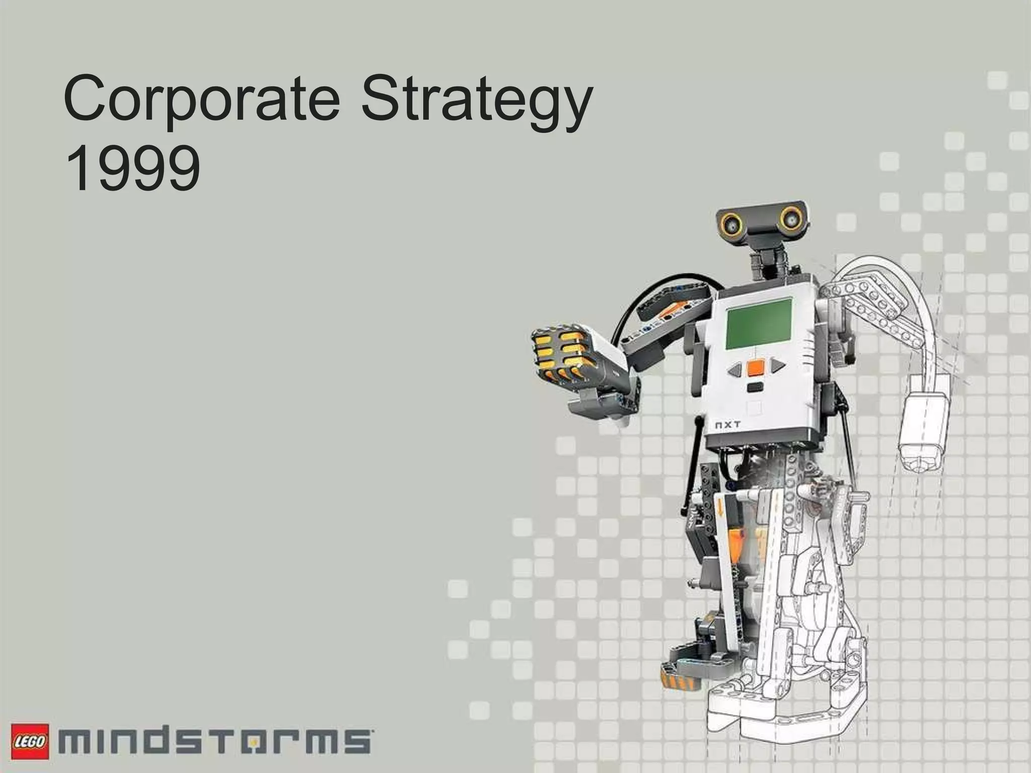 LEGO is a Danish toy company founded in 1932. It manufactures and distributes plastic building blocks and kits. In the late 1990s, LEGO launched LEGO Mindstorms, a programmable robotics kit for older children and adults. While Mindstorms was initially successful, it struggled to gain widespread adoption in schools and faced competition from other tech companies. The document discusses LEGO's strategy to integrate Mindstorms and leverage synergies between the new and core businesses.