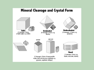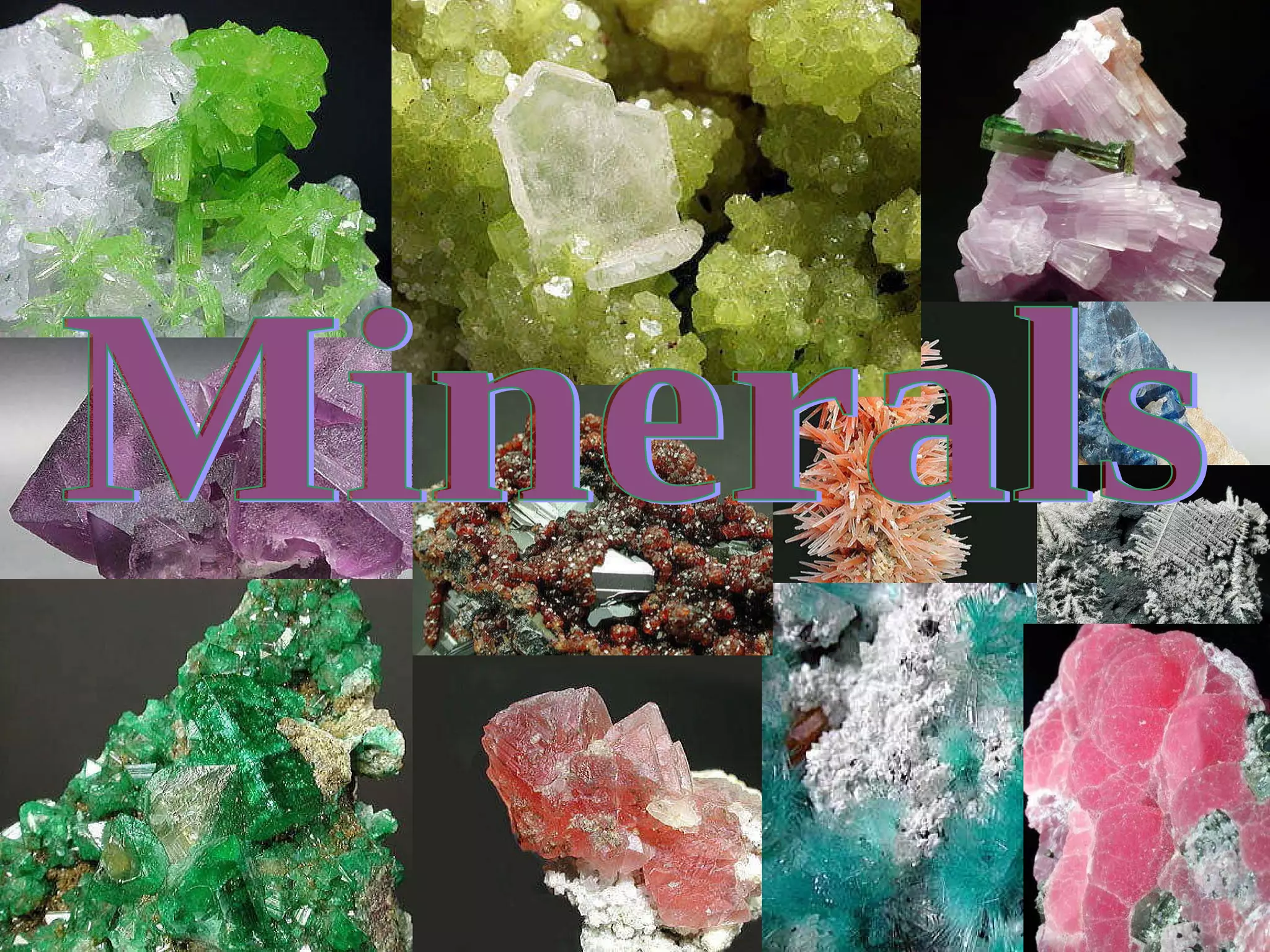 1) Minerals are naturally formed solid substances with a crystal structure that are not alive and have a definite volume and shape.