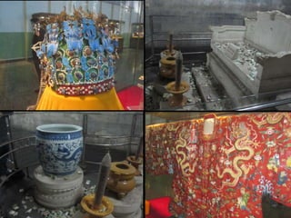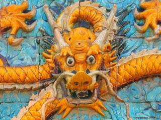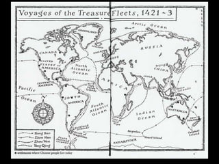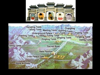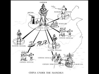 The document provides information about several important dynasties and figures in Chinese history, including the Mongol Empire founded by Genghis Khan, the Yuan Dynasty established by Kublai Khan, the Ming Dynasty founded by the Hongwu Emperor which overthrew the Mongols, and the last dynasty, the Qing. It discusses key emperors like the Yongle Emperor who oversaw construction projects, and the naval explorer Zheng He who led vast treasure ship expeditions. The Ming Dynasty declined in the 15th century and fell to the Manchu Qing Dynasty in 1644, ending ethnic Han rule in China.