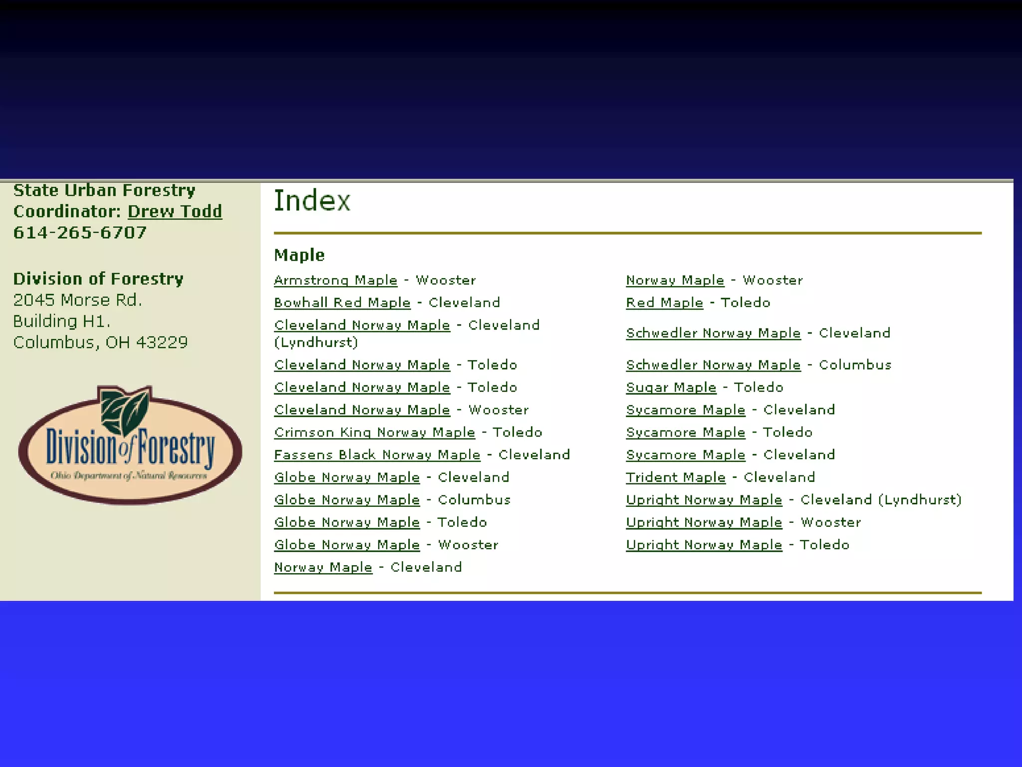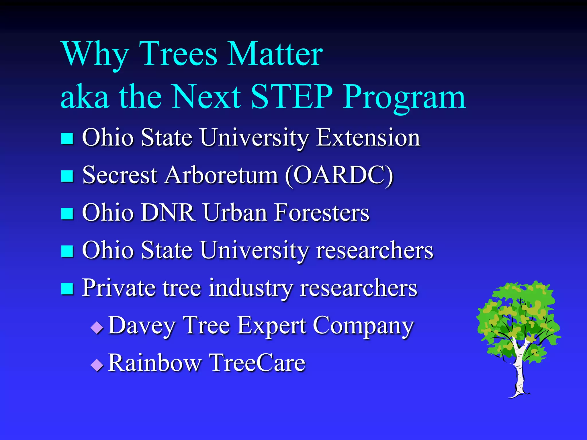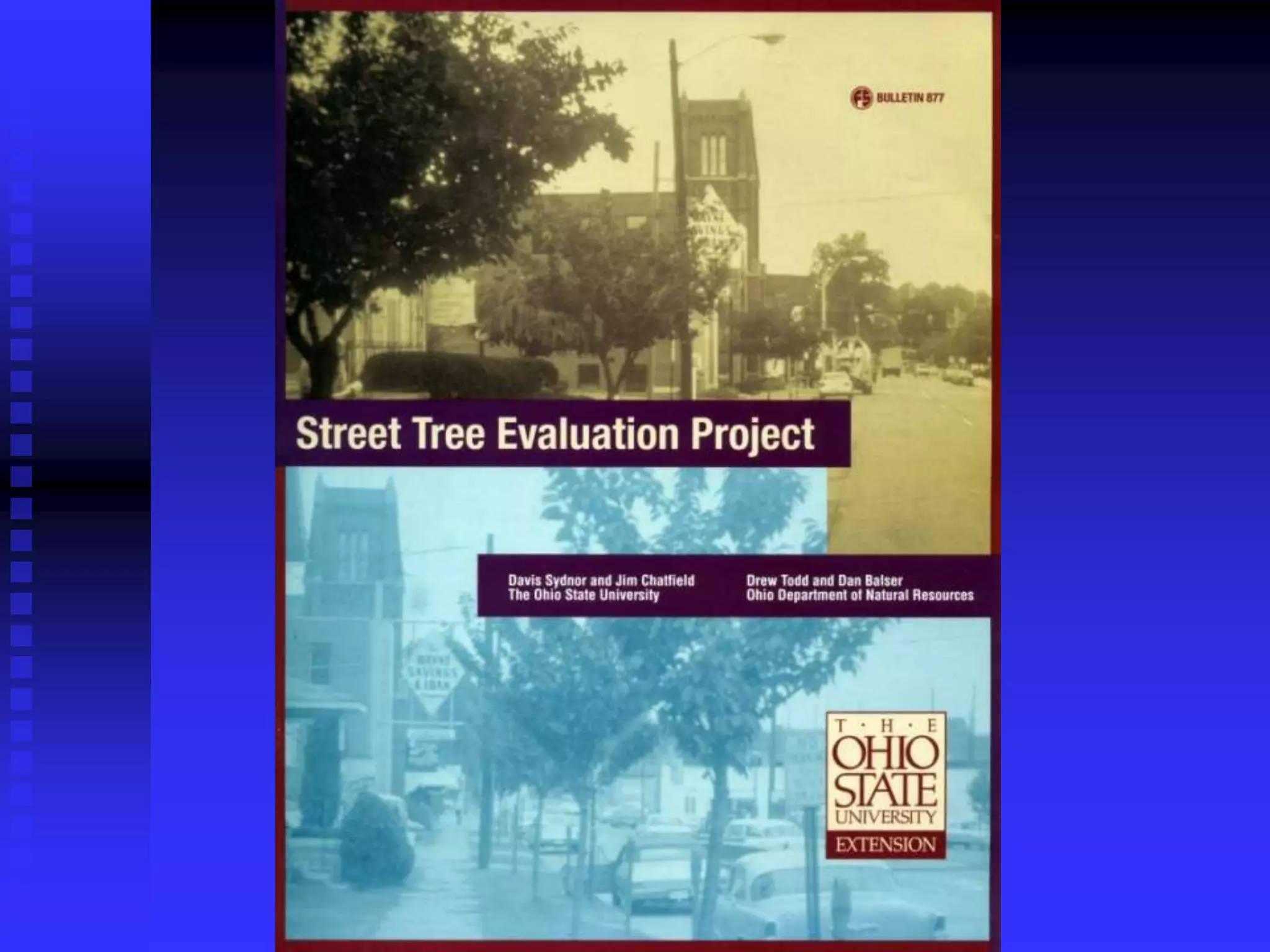 - The Why Trees Matter program run by Ohio State University Extension which evaluates street trees in Ohio communities and trains master gardeners. Their Ohio Street Tree Evaluation Project has studied trees at over 140 sites since the 1960s.