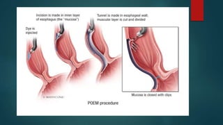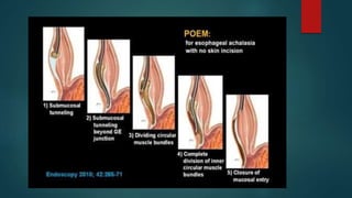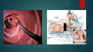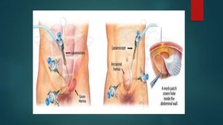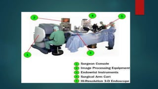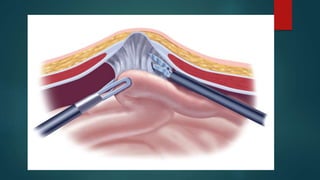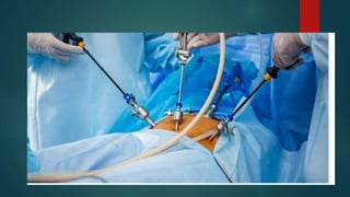 This document provides an overview of minimal access surgery (MAS). It defines MAS as applying modern technology to minimize surgical trauma without compromising exposure or safety. The history of MAS is traced from early laparoscopic procedures in the 1900s to developments like natural orifice transluminal endoscopic surgery (NOTES) and single incision laparoscopic surgery (SILS) more recently. The advantages of MAS include reduced pain, wounds, and recovery time compared to open surgery. Potential complications include injuries and those related to pneumoperitoneum such as arrhythmias. A variety of endoscopic, laparoscopic, and catheter-based minimal access procedures across several specialties are described in the document.