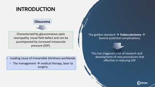 Minimally Invasive Glaucoma Surgery (MIGS) includes various techniques designed to reduce intraocular pressure (IOP) while minimizing surgical trauma and complications. Procedures like trabecular meshwork bypass stents, suprachoroidal implants, and subconjunctival filtration provide effective treatment options for patients with mild to moderate open-angle glaucoma. MIGS promises enhanced patient quality of life and may defer the need for more invasive surgical interventions.