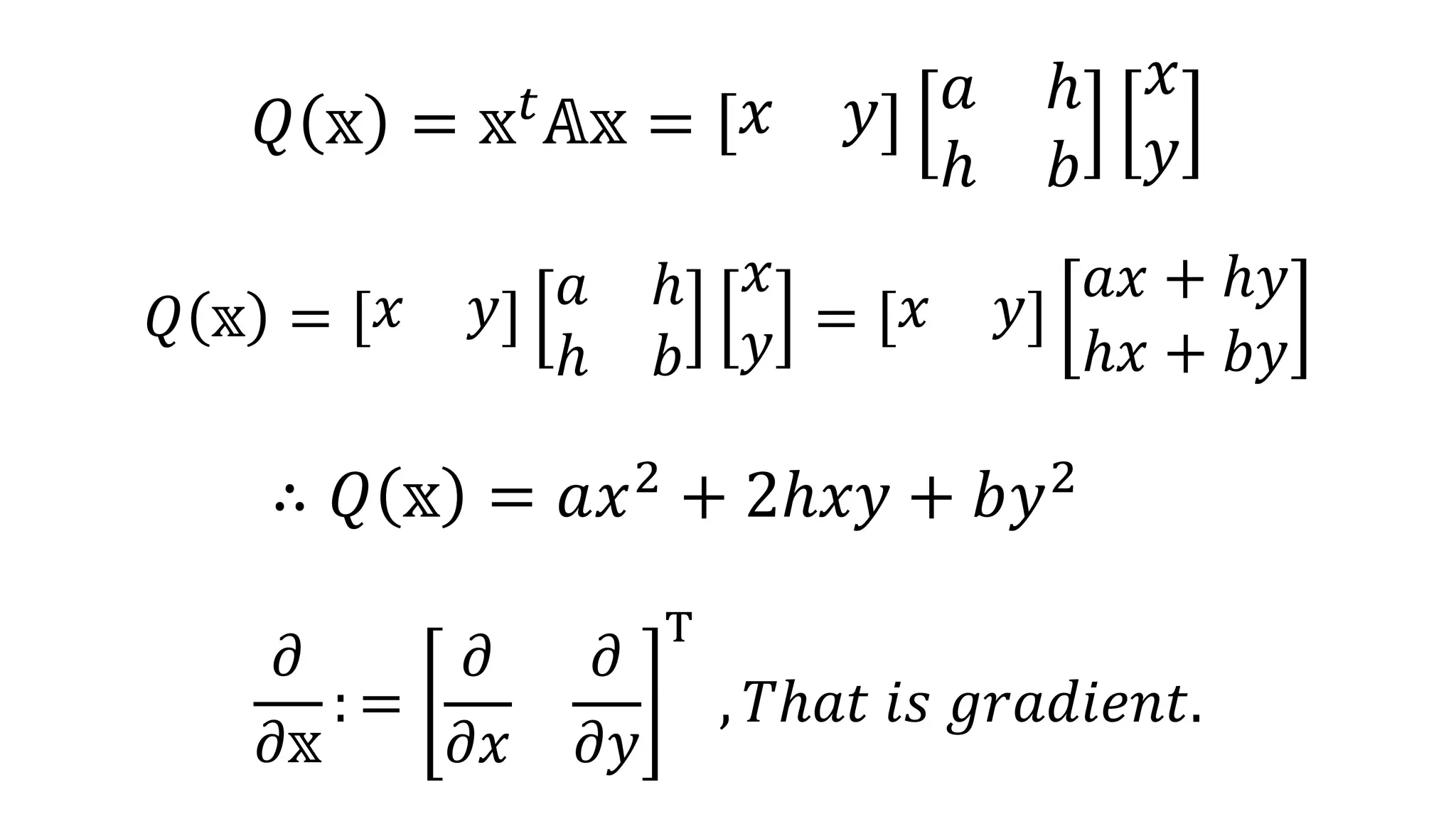The document discusses the derivative of a quadratic form Q(x) = xTAx. It shows that the gradient of Q(x) is equal to 2Ax. To find the saddle point of Q(x), the derivative with respect to x, which is 2Ax, is set equal to 0. Solving this results in an expression for the coordinates x and y of the saddle point in terms of the coefficients of the quadratic form matrix A.