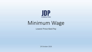 The document provides information on minimum wage laws in the Philippines, detailing regional wage orders, the coverage and exemptions for various employee categories, and the calculation of equivalent salaries for monthly and daily-paid employees. It highlights that minimum wage earners are exempt from certain income taxes and outlines the roles of employers and the government in distributing statutory monetary benefits. Additional resources and services related to human resource topics, including legal compliance and professional development training, are also mentioned.