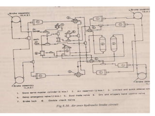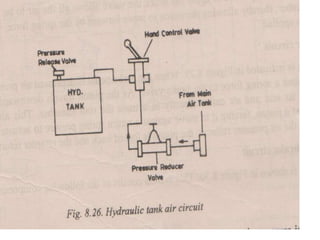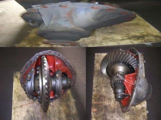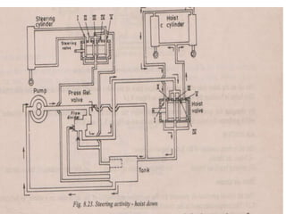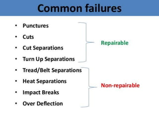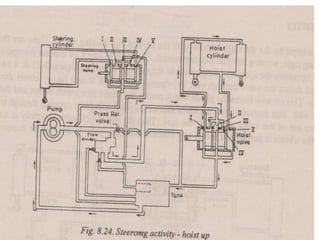 This document discusses different types of dumpers classified by their dumping method (rear, side, bottom discharge), frame type (rigid, articulated), and capacity (small, medium, large, giant). It provides details on the key components of dumpers including the chassis, body, powertrain, hydraulic and braking systems. The rear discharge dumper and its variants are described in more depth. Key aspects covered include the dump body, suspension, wheels, tyres, cab, and causes of tire damage.