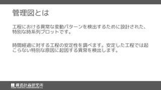 統計解析ソフトMinitab 17によるXbar-R管理図を使った品質管理の方法を紹介します。最初に管理図とその種類についての簡単な解説をはさみます。カムシャフトの製造工程において、その長さをモニタリングし、異常を検出する問題に対してXbar-R管理図を用います。 Minitab 17の製品情報やセミナー情報はこちら http://www.kke.co.jp/minitab/
