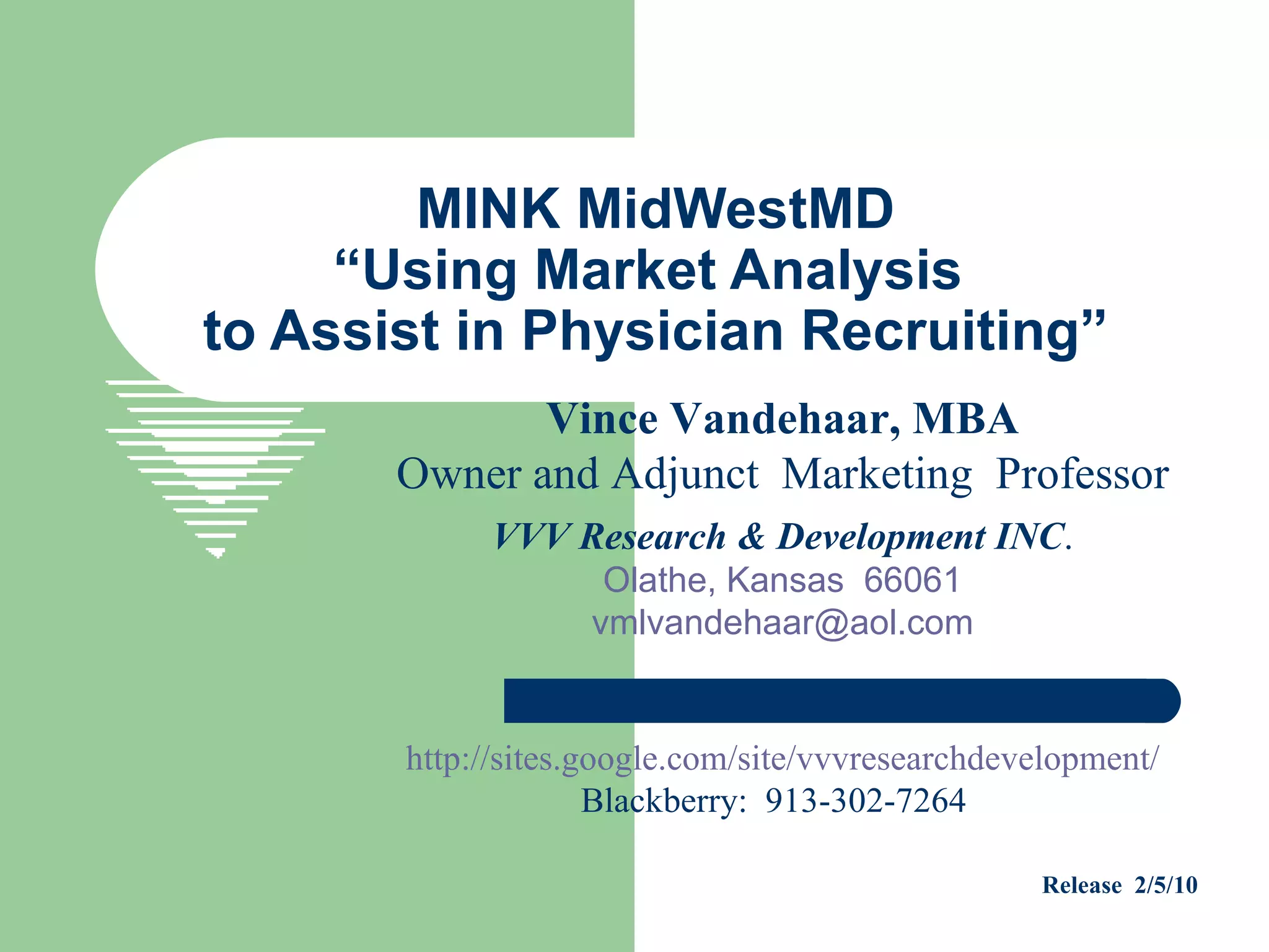 This document summarizes the steps involved in conducting market analysis to assist with physician recruiting for a hospital/healthcare system. It involves 4 phases: 1) Qualifying physician need through leadership discussions, 2) Quantifying need by comparing physician supply and demand data, 3) Analyzing data and preparing a report with recruiting recommendations, 4) Presenting findings to senior management. The analysis would determine physician needs by specialty for the next 3 years to guide recruitment efforts.