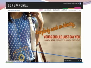 This internship project aims to understand strategies for survival and growth in the e-retail industry. The intern will study operations at two e-tailing startups - Myglauben.com and Donebynone.com. At Myglauben, the intern will manage catalog and vendor functions. At Donebynone, the intern will work as a fashion consultant. The intern expects to learn about differences between e-tailing and traditional retail, supply chain management, and social media promotion techniques.