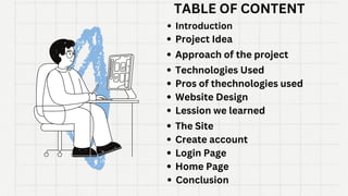 This document summarizes a student project presenting a movies streaming website. The project used HTML, CSS, JavaScript, jQuery and Bootstrap to create a platform for users to stream movies. Key features included creating an account, login pages, and a home page to watch latest movies categorized into different sections. The students learned about design challenges, the importance of planning and allowing for changes. Their website leveraged modern technologies to provide an engaging user experience for streaming movies from any location.