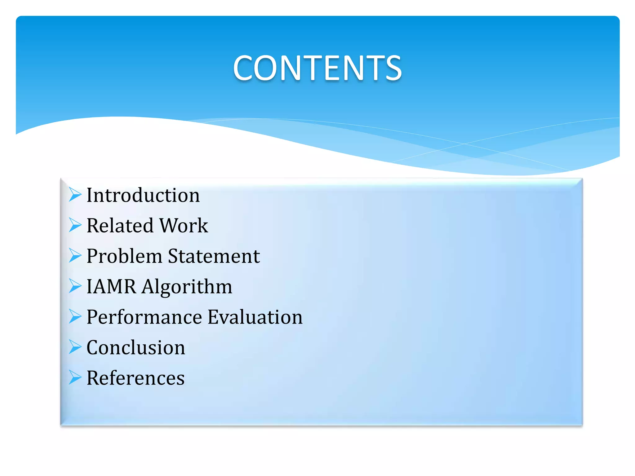 The document outlines the development of the Interference-Aware Multipath Routing (IAMR) protocol designed to improve routing efficiency in Wireless Sensor Networks (WSNs) by addressing the limitations of single-path routing strategies. It emphasizes the benefits of the IAMR protocol, including reduced energy consumption, increased throughput, and enhanced latency performance compared to existing protocols like the Energy-Efficient Collision-Aware (EECA) protocol. Performance evaluations show that IAMR outperforms EECA in metrics like end-to-end delay and throughput under varying traffic conditions.