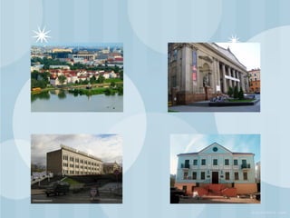 Minsk is the capital and largest city of Belarus, located along the Svislach and Niamiha rivers. During World War II, Minsk was almost completely destroyed by German invaders but was rebuilt in the postwar years. Modern Minsk has a diverse economy focused on industries like tractor manufacturing, vehicle production, and household appliances. It also has a large higher education system and cultural scene centered around libraries, museums, theaters, and parks.