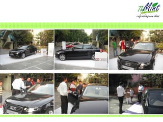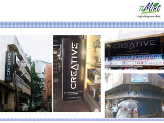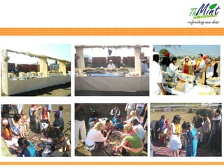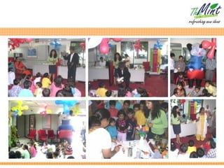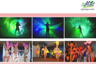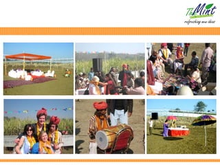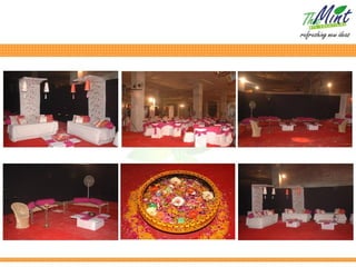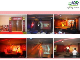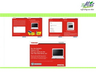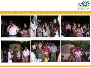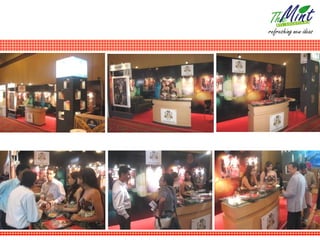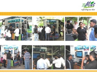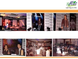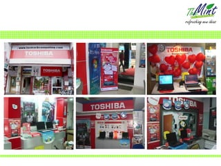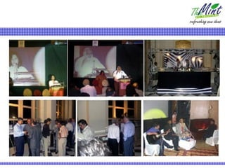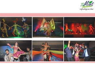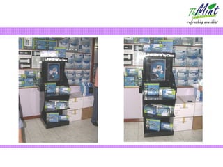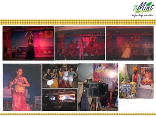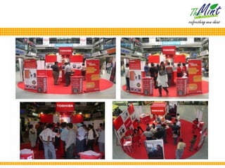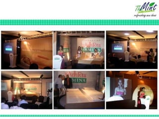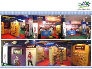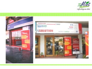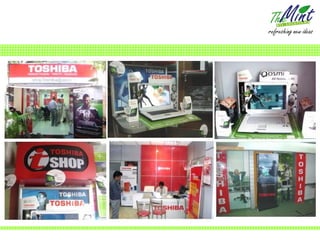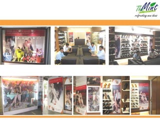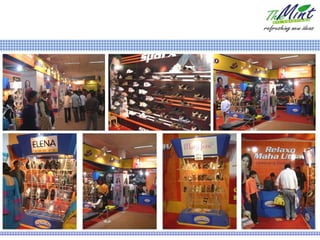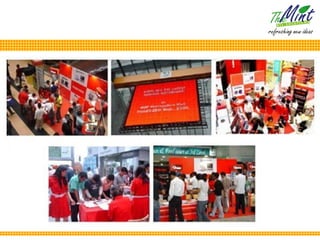 The document provides an overview of Mint Marketing Services, a BTL agency that is part of Arms Communications advertising agency. It outlines Mint's offerings such as product launches, exhibitions, retail promotions, and creative services. It then highlights Mint's experience and global resources. Several examples of Mint's successful campaigns are then showcased, including product launches, roadshows, trade shows, and retail programs. Creative services provided by Mint like design of POP items are also mentioned. The document serves to promote Mint Marketing Services' capabilities in below-the-line marketing.
