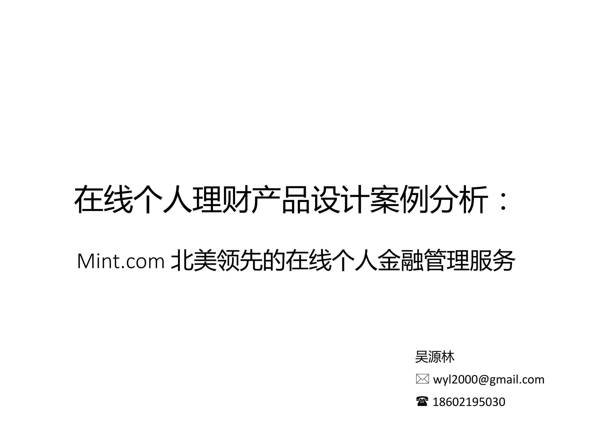 Mint.com是一项北美领先的在线个人金融管理服务,通过提供免费的理财工具和服务来帮助用户节省时间和金钱。其产品设计注重用户体验,采用自动分类和情感化设计,旨在简化个人理财的复杂过程。通过口碑和病毒式营销,Mint.com成功吸引了大量用户并实现盈利。