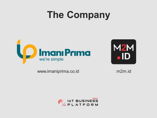MIP Platform is an Indonesian company that provides M2M and IoT solutions. It started providing M2M solutions in 2007 and obtained a telecommunications license in 2009. It has since expanded its customer base and services. It began with vessel monitoring and now monitors various land and sea assets including fuel consumption. It has over 25,000 subscribers and the largest AIS network in Indonesia. MIP Platform has evolved its middleware over three generations to improve flexibility, optimization, and monitoring for efficiently processing millions of data transactions daily on open source technology. It provides customized end-to-end M2M and IoT solutions including hardware, software, connectivity, compliance, consulting, and after-sales support.