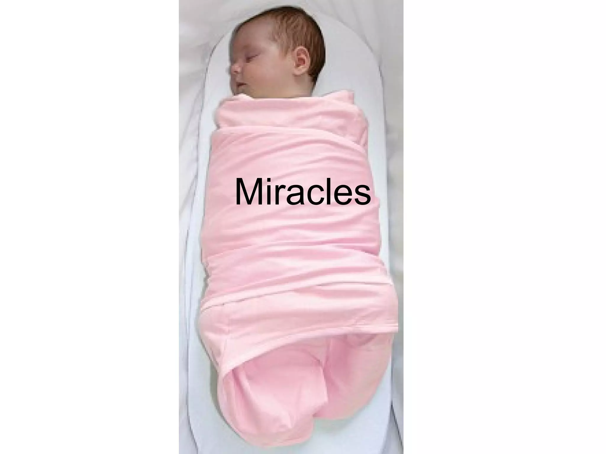 The document discusses the miracles performed by Jesus as recorded in the gospels, including healing miracles, nature miracles, and expelling miracles. It states that the evangelists saw the miracles as signs that Jesus was the Messiah, as prophets had foretold there would be signs and miracles to identify the Messiah. The miracles also helped people understand God's love and care for all people, especially the sick, poor, and outcasts. The document concludes by mentioning modern miracles associated with reported appearances of Mary.