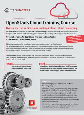 για να δηµιουργήσουν ένα OpenStack Cloud. Οι εκπαιδευόµενοι θα λάβουν ένα εντατικό µείγµα εκπαιδεύσεων που