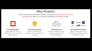 #20 OpenStack (Juno & Kilo based) clouds globally Of the 70+ clouds 57 are production application and network clouds.