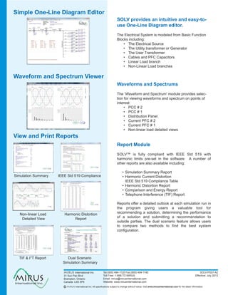 SolvTM is a free software tool designed for power quality professionals to evaluate and compare solutions for treating harmonics in adjustable speed drive applications. It simulates energy analysis and harmonic distortion, provides various reports, and allows dual scenario simulations to optimize configurations. The software is compliant with IEEE standards and features an intuitive interface for users across several industries.