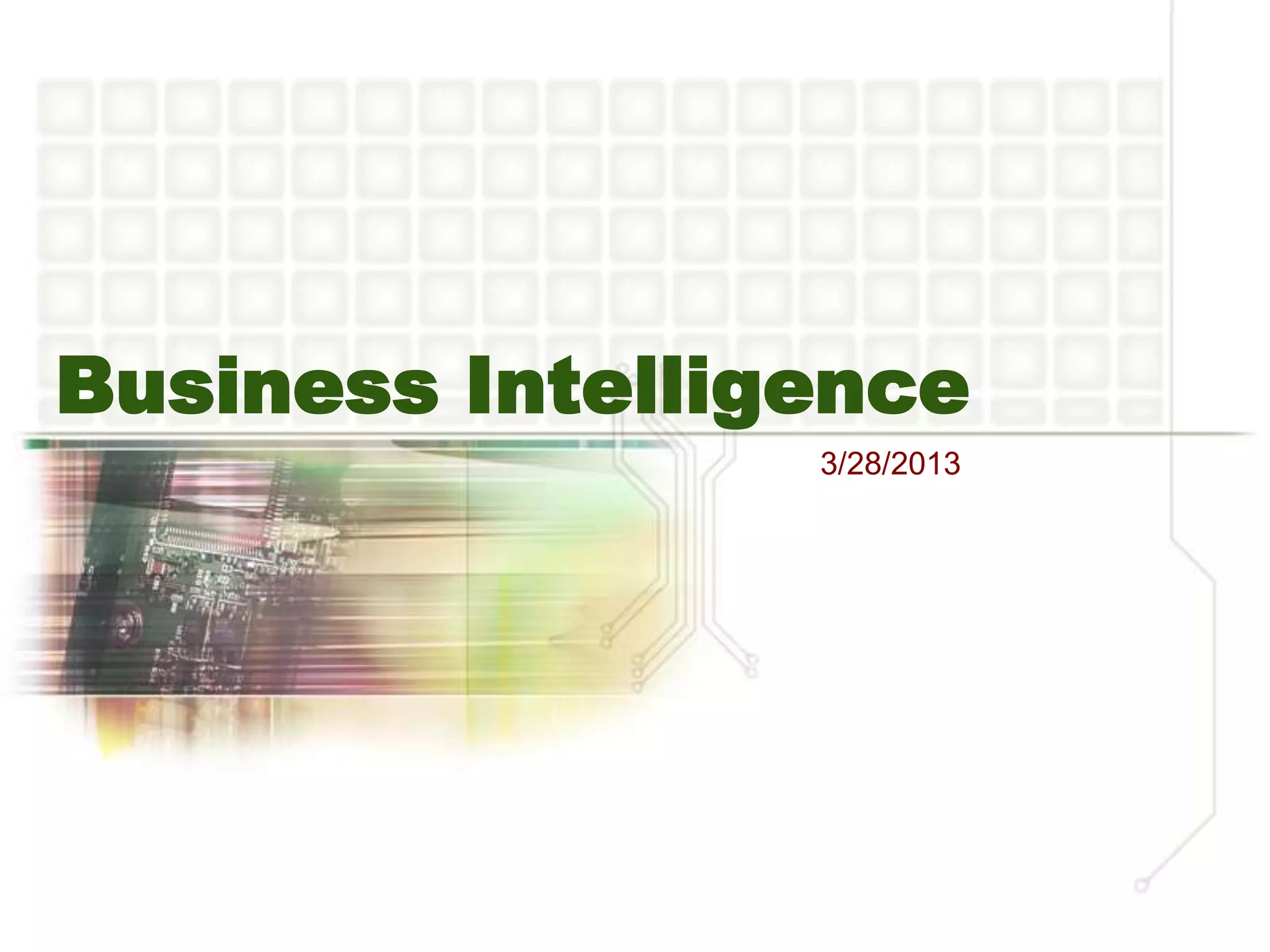 This document discusses big data and business intelligence. It defines big data as large volumes of varied data that is collected and processed rapidly. It outlines different types of primary BI systems including reporting systems, data mining systems, knowledge management systems, and expert systems. It also discusses challenges with raw data and the need for data warehousing to extract, clean, and prepare data from different sources for BI processing and analysis. Finally, it provides an example of how a mountain resort (MRV) could use BI and data warehousing to develop a data storage plan, generate reports on repeat business, identify high-value customers, and analyze equipment usage.