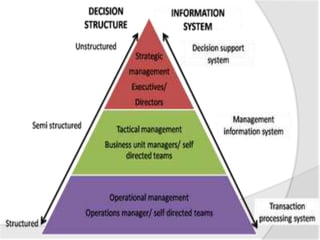 The document defines a management information system (MIS) as an integrated user-machine system that supports operations, management, and decision-making functions by processing inputs into outputs. It outlines various types of information systems including transaction processing systems, decision support systems, and expert systems while emphasizing the importance of interdependencies among system components. Additionally, it highlights systems thinking as a problem-solving approach that considers the overall system rather than isolated issues.