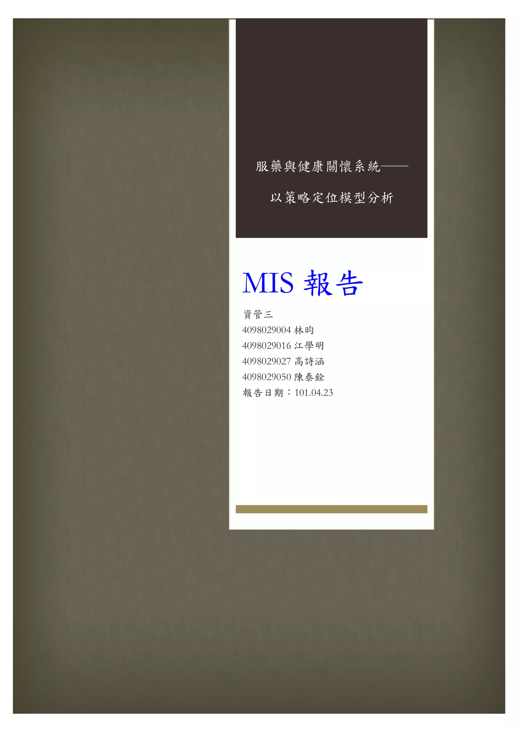 本報告分析了服藥與健康關懷系統的策略定位模型,重點在於從外部業務向提供關懷信息和在線諮詢服務的轉變。報告指出組織內部技能的提升以及資訊科技能力的應用,包括智能手機應用程式的開發,以增強顧客服務和企業流程效率。最後,系統能力需與現有的POS系統和會員數據整合,以實現全面功能。