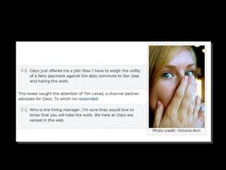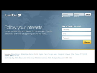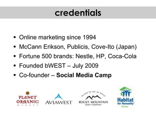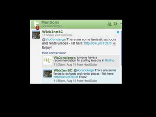 This document provides an introduction to getting started with social media. It discusses what social media is, including common social networks like Facebook, LinkedIn, and Twitter. It then focuses on Twitter, describing it as a microblogging service and recommendations for what to tweet, such as adding value, asking questions, and providing customer service. Finally, it lists three things that can be done today to begin engaging on social media, including creating a LinkedIn profile, opening a Twitter account, and setting up Hootsuite to start listening.