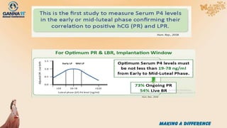 The document discusses prevention strategies for reducing miscarriage rates, highlighting the significance of maternal age and immune factors. It emphasizes the potential role of progesterone in improving pregnancy outcomes and presents findings from a study comparing oral dydrogesterone and MVP regarding their efficacy in supporting luteal phase. Additionally, it suggests preimplantation genetic testing (NIPGT) as a less invasive method to assess embryo chromosomal health, although it notes the need for further studies to establish its effectiveness in recurrent miscarriage cases.