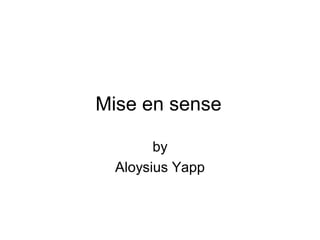 This document discusses the concept of mise en sense, which refers to setting up a scene or environment in a logical, convincing, and comfortable way. It involves considering both external elements like locations, props, lighting, and costumes as well as internal elements like feelings and perspectives. The document provides examples of aspects to consider when setting up a scene, such as where to position characters on the stage or set, and emphasizes that thorough preparation and study of things like history can help make the scene feel more realistic.