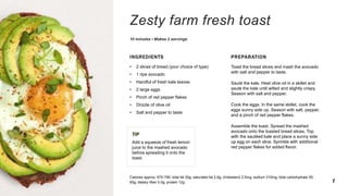 This document contains recipes for 7 healthy meals and snacks: