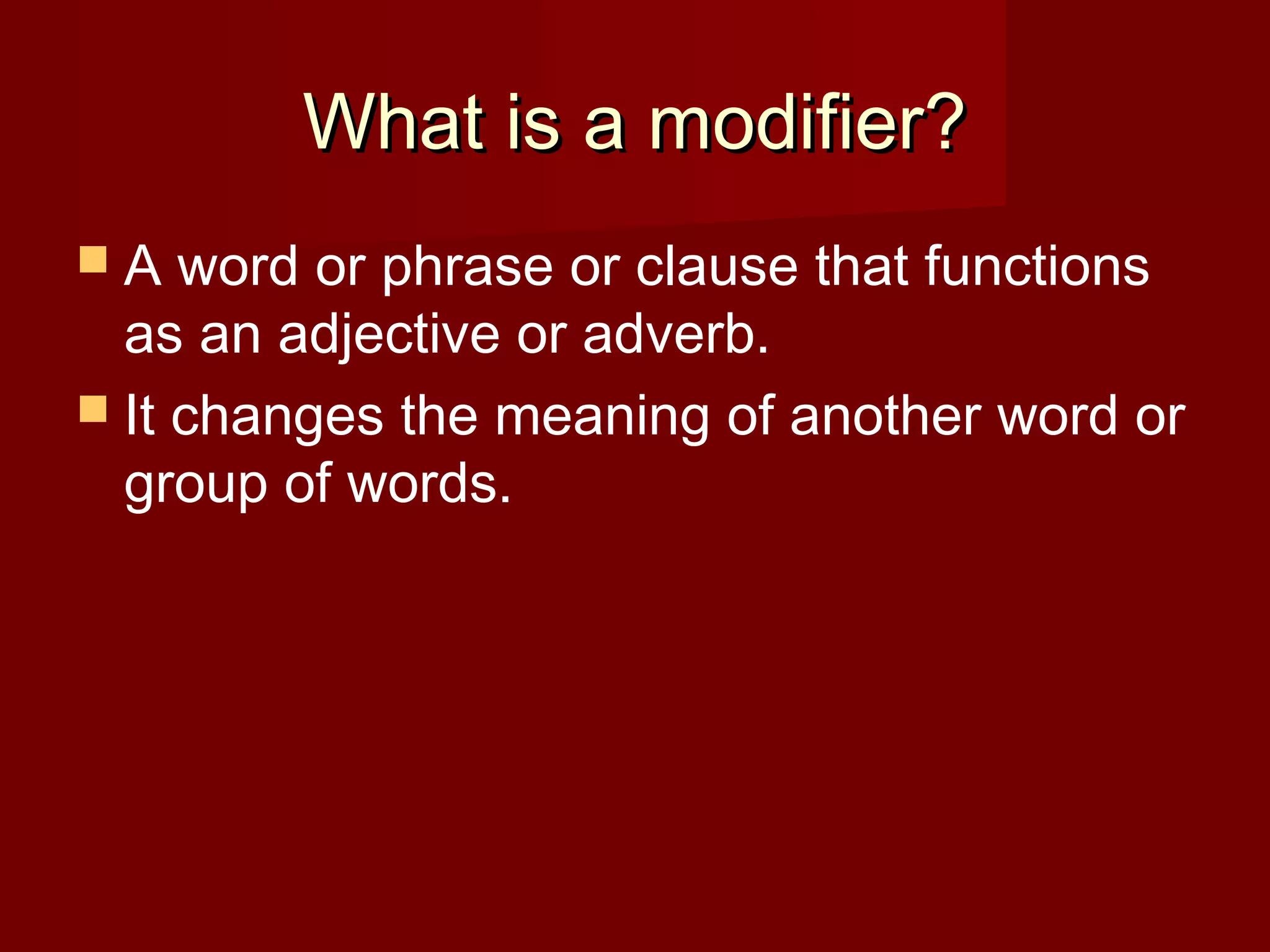 This document discusses misplaced modifiers and provides guidelines and examples. It defines a modifier as a word or phrase that functions as an adjective or adverb and changes the meaning of other words. The two main guidelines are to place modifiers close to what they modify and ensure clauses logically follow each other. The document then gives examples of misplaced modifiers and restructures the sentences to correctly position the modifiers.
