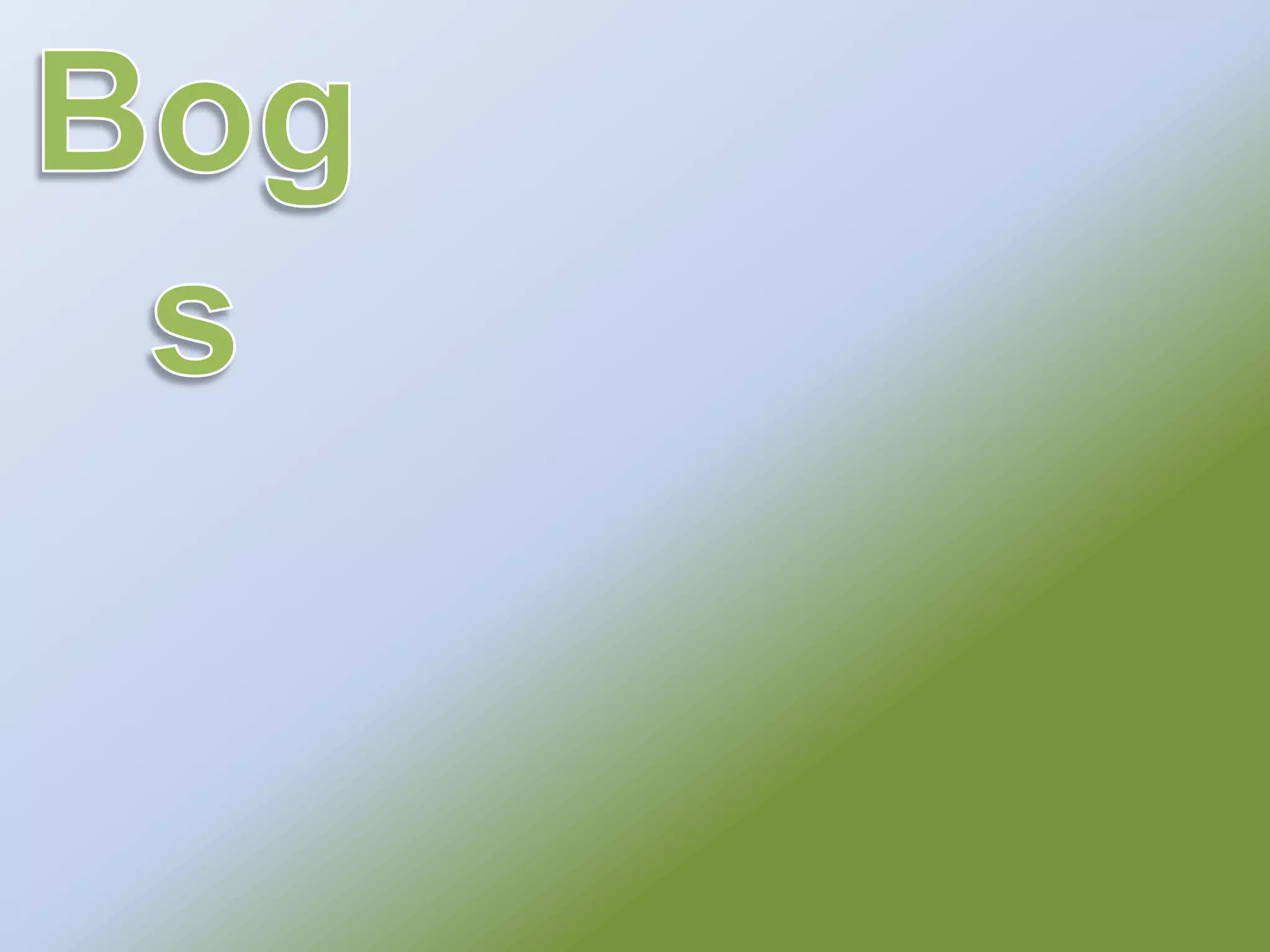 Bogs are areas of soft marshy ground near wetlands that have been around for almost 10,000 years. They are characterized by thick mats of sphagnum moss encircling or covering small lakes or ponds, and contain plants like cranberry, Labrador tea, and bog laurel. Bogs are found in glaciated regions of the Northeast and Great Lakes, covering ponds or lakes, and exist in several U.S. states including Illinois, Minnesota, New Hampshire, North Carolina, Ohio, Pennsylvania, and Virginia.