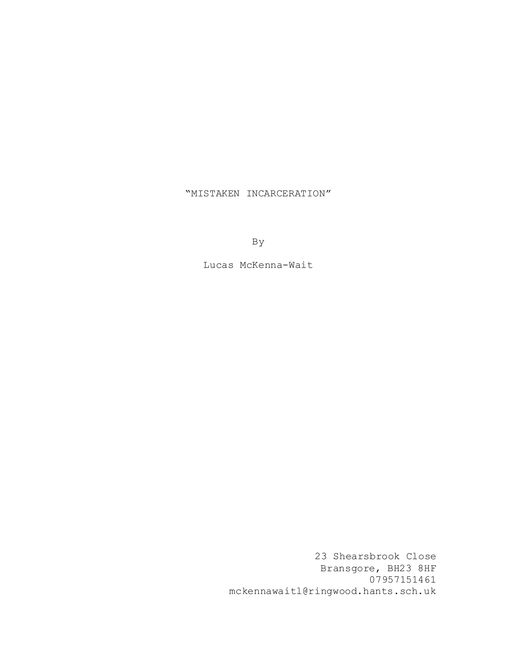 This document is a screenplay that tells the story of Michael, who is mistaken for a bank robber by the police. After getting into a fight with police officers at a local pub, Michael flees home. Meanwhile, the real bank robber escapes. The police enlist a criminal to help track down Michael, believing him to be the bank robber. The criminal breaks into the home of Michael's friend Theo to get information on Michael's whereabouts.