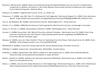 This document discusses how social media and technology can help churches create a sense of community, aid in assimilating new members, and help with member retention. It presents survey results that found communicating through the internet allowed people to meet others they otherwise wouldn't. Using technology was seen as important for staying connected. The document concludes that while technologies will change, relationships built through social computing can endure.