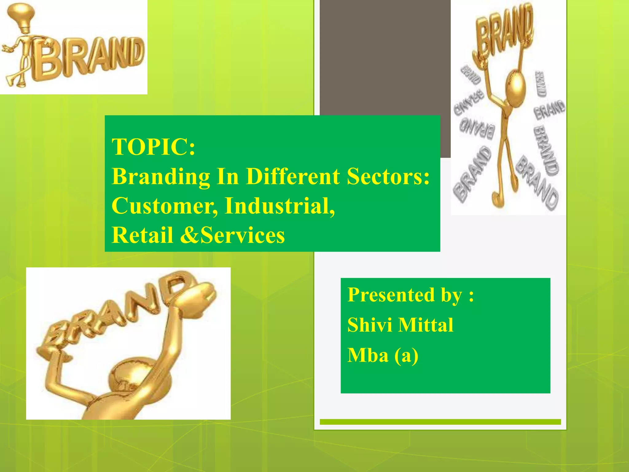 This document discusses branding in different sectors including customers, industrial, retail, and services.