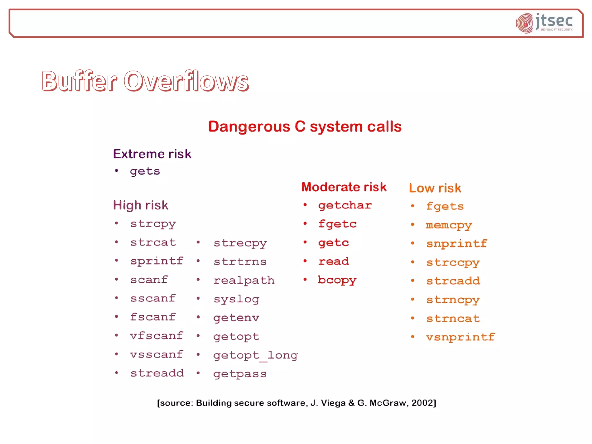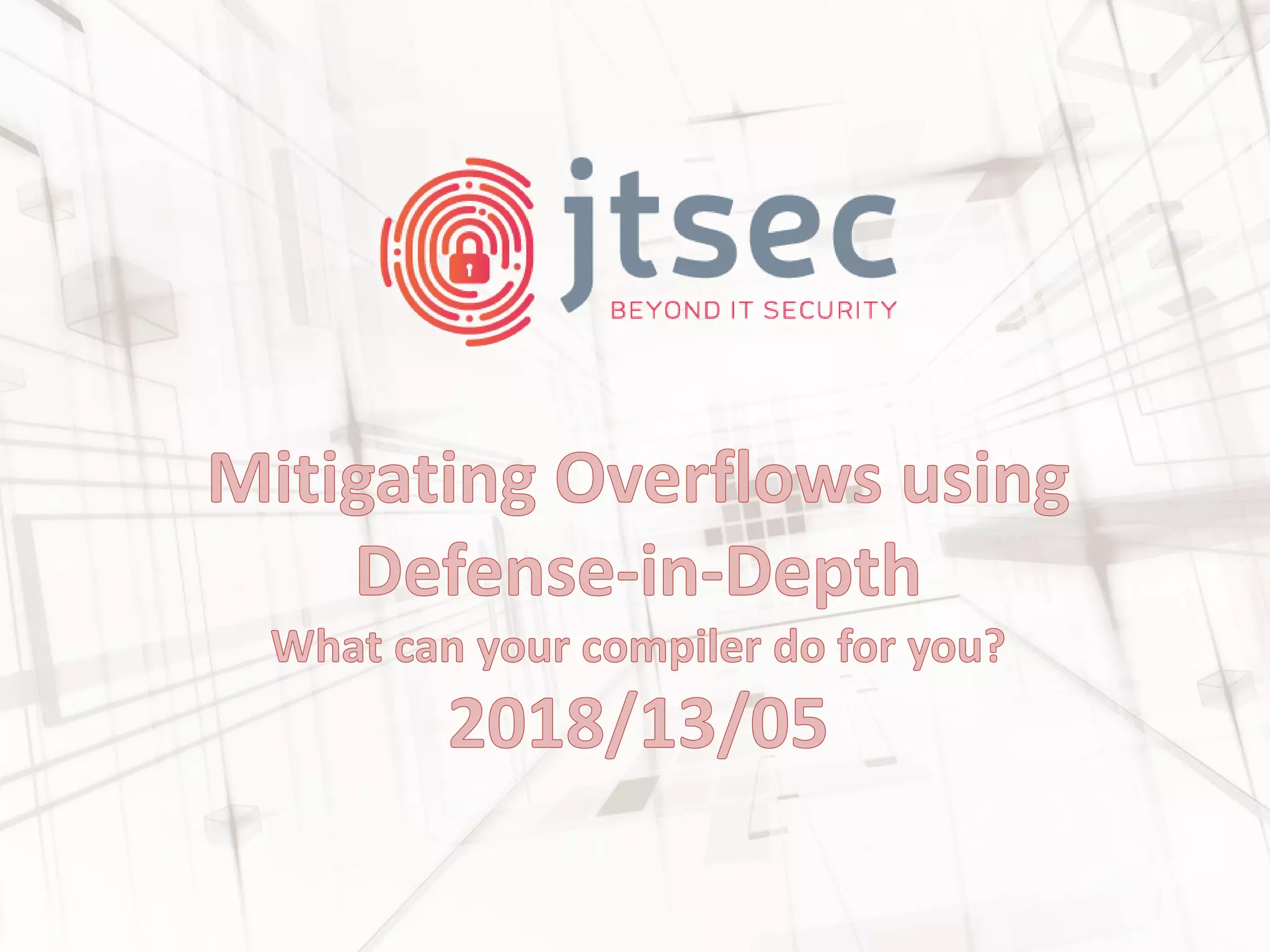 The document discusses various methods and practices for programming secure code, emphasizing security measures such as buffer overflow detection and protection mechanisms in compilers. It covers tools and flags in different compilers, including Microsoft Visual C++ and GCC, that help in identifying vulnerabilities and ensuring code safety. Additionally, it explores advanced topics like control flow integrity and vtable verification to prevent control-flow hijacking and other types of security exploits.