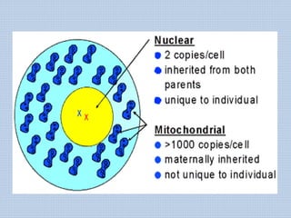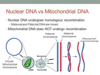 • Unlike nuclearDNA, mitochondrial DNA doesn’t