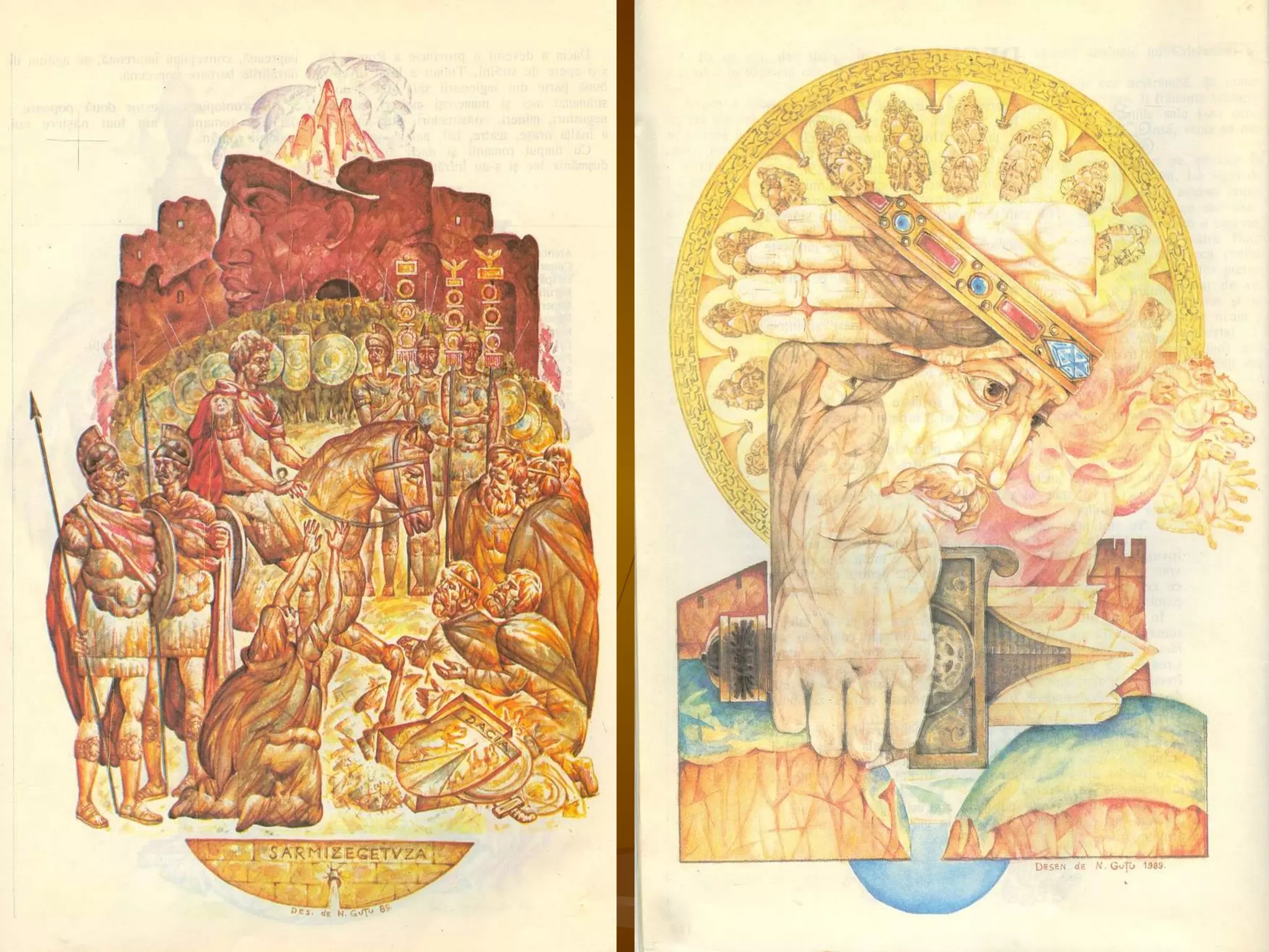 The document discusses Thracian and Dacian mythology. Thracian mythology featured powerful gods and nature spirits that were worshipped. Dacian mythology shared similarities with Thracian beliefs and also incorporated ancestral worship of past kings and heroes.