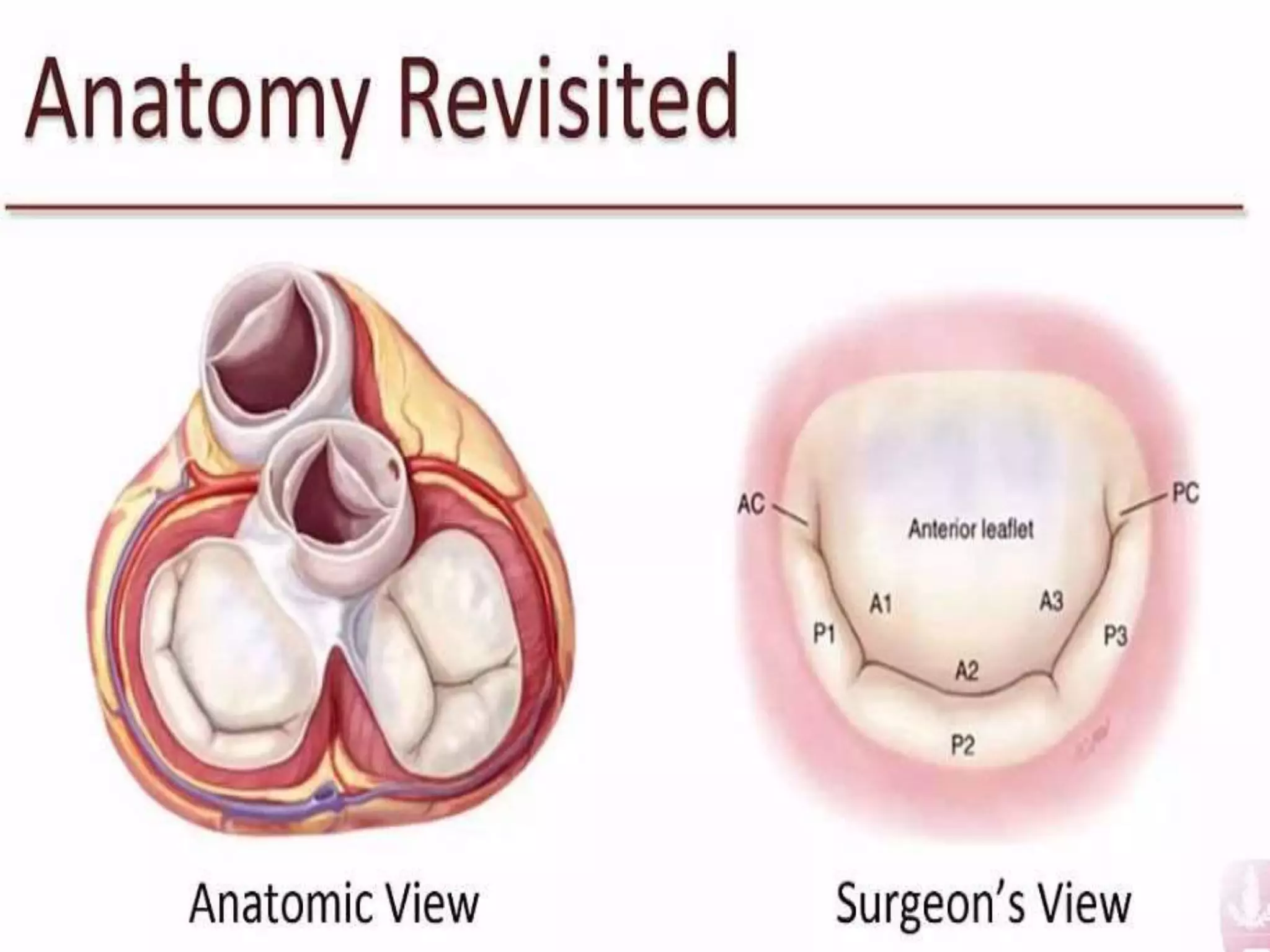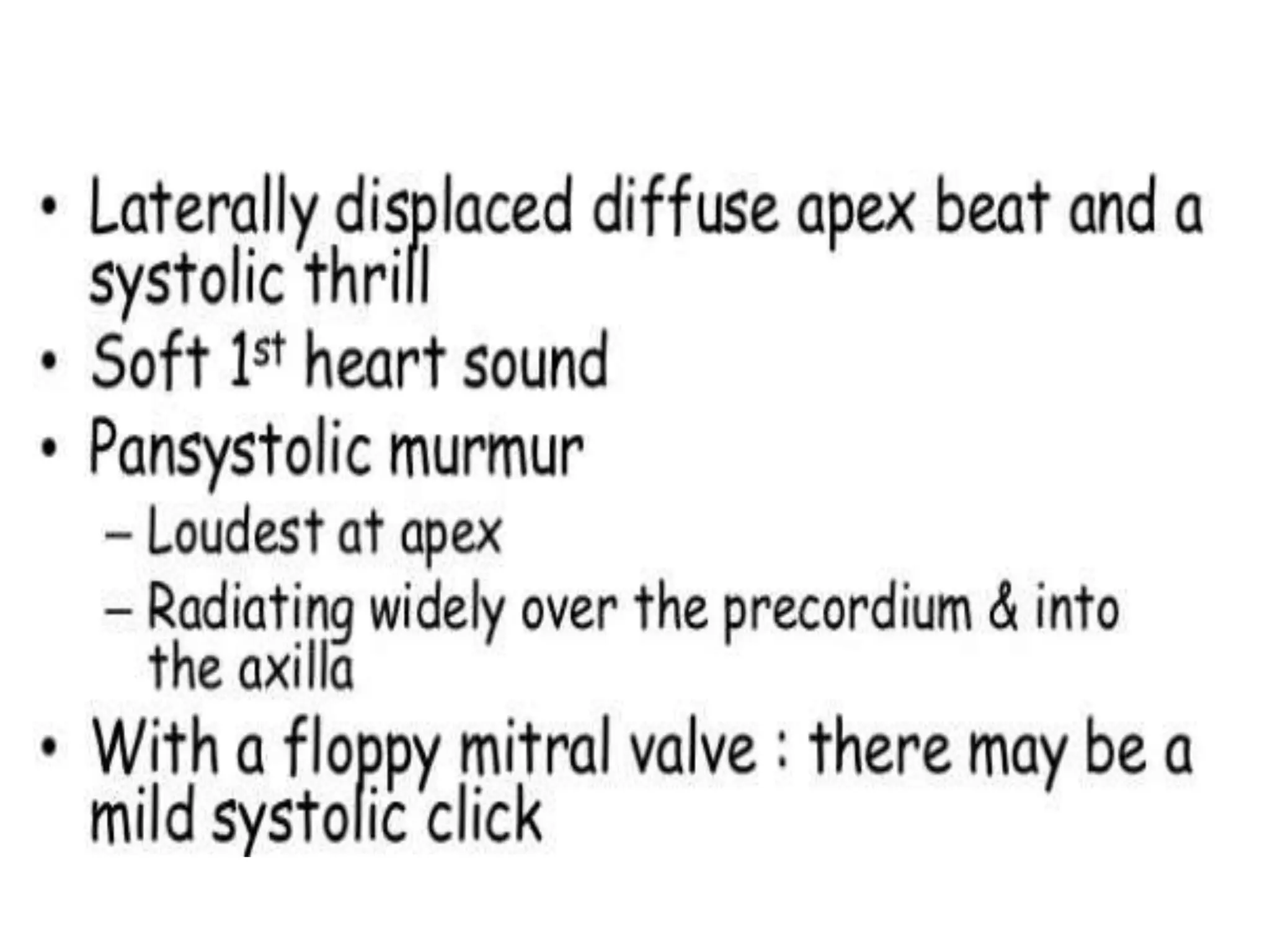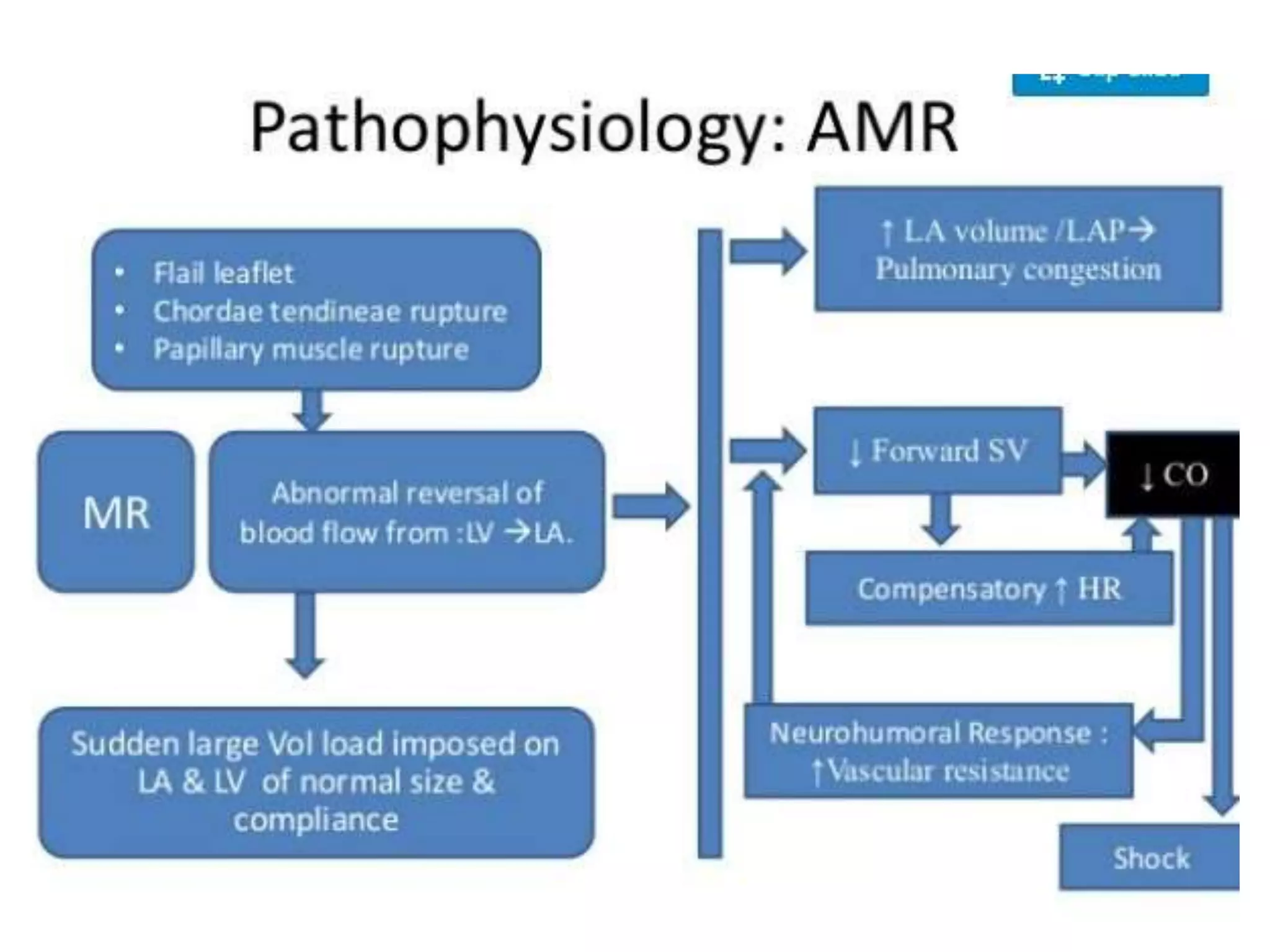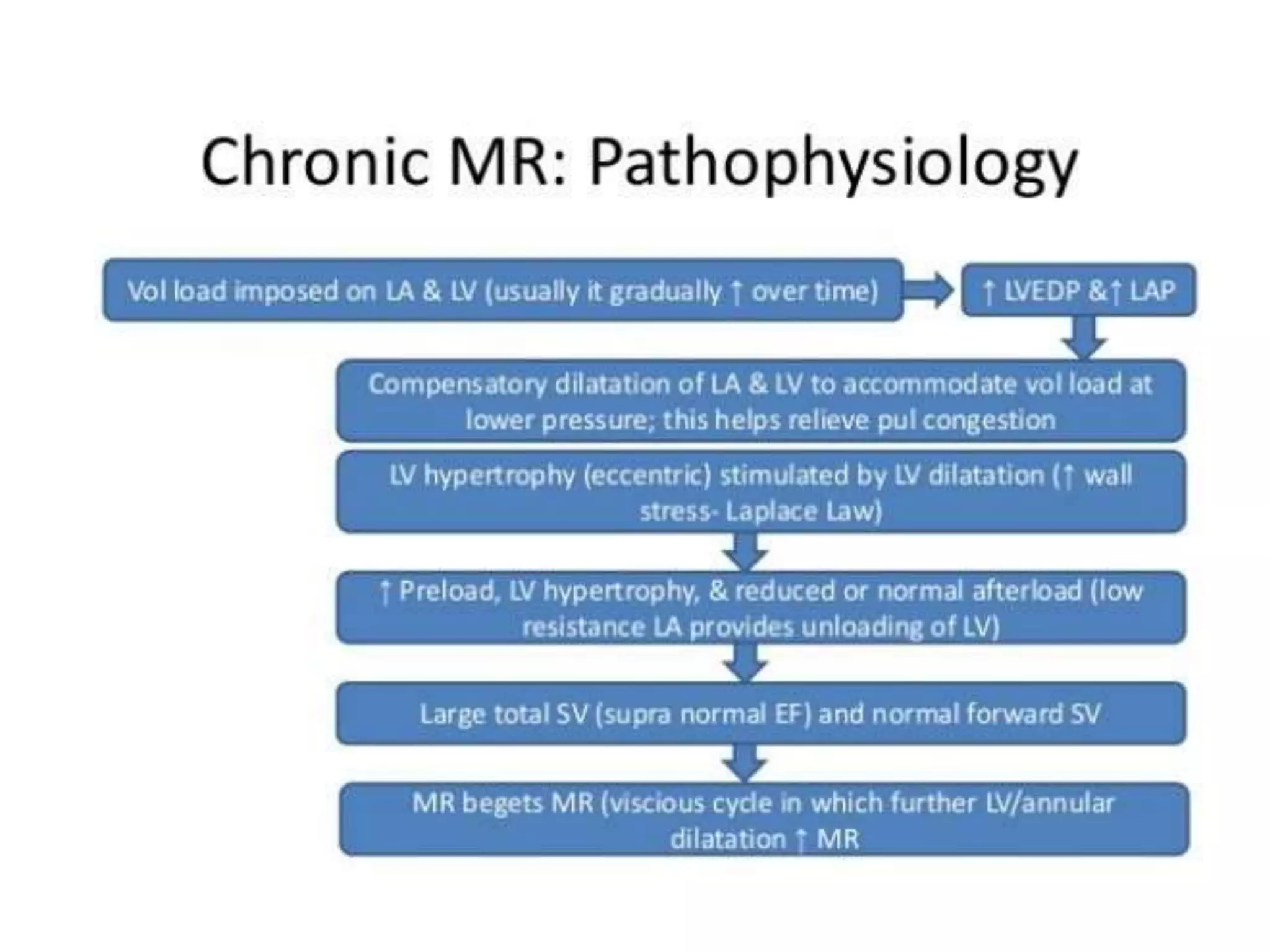 Mitral regurgitation is the abnormal reversal of blood from the left ventricle to the left atrium, caused by disruption of the mitral valve apparatus. It can be divided into acute, chronic compensated, and chronic decompensated stages. The etiology includes primary causes where the valve itself is abnormal, and secondary causes where the heart problem leads to valve dysfunction. Diagnosis is typically made using a 2D echocardiogram to visualize the valve and assess the severity and cause of regurgitation. Treatment options involve medical management or surgical repair or replacement of the valve.