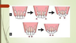 This document discusses the mixed dentition phase, which occurs between ages 6-12 years when primary and permanent teeth are present. It describes the eruption sequences and features of primary and permanent teeth. The mixed dentition phase involves three transitional periods: 1) eruption of first permanent molars and incisor transition, 2) a stable interim phase, and 3) replacement of primary canines and molars with permanent premolars and canines as well as eruption of second permanent molars. Managing spacing issues during transitional periods involves utilization of primate spaces and dental arch width increases.