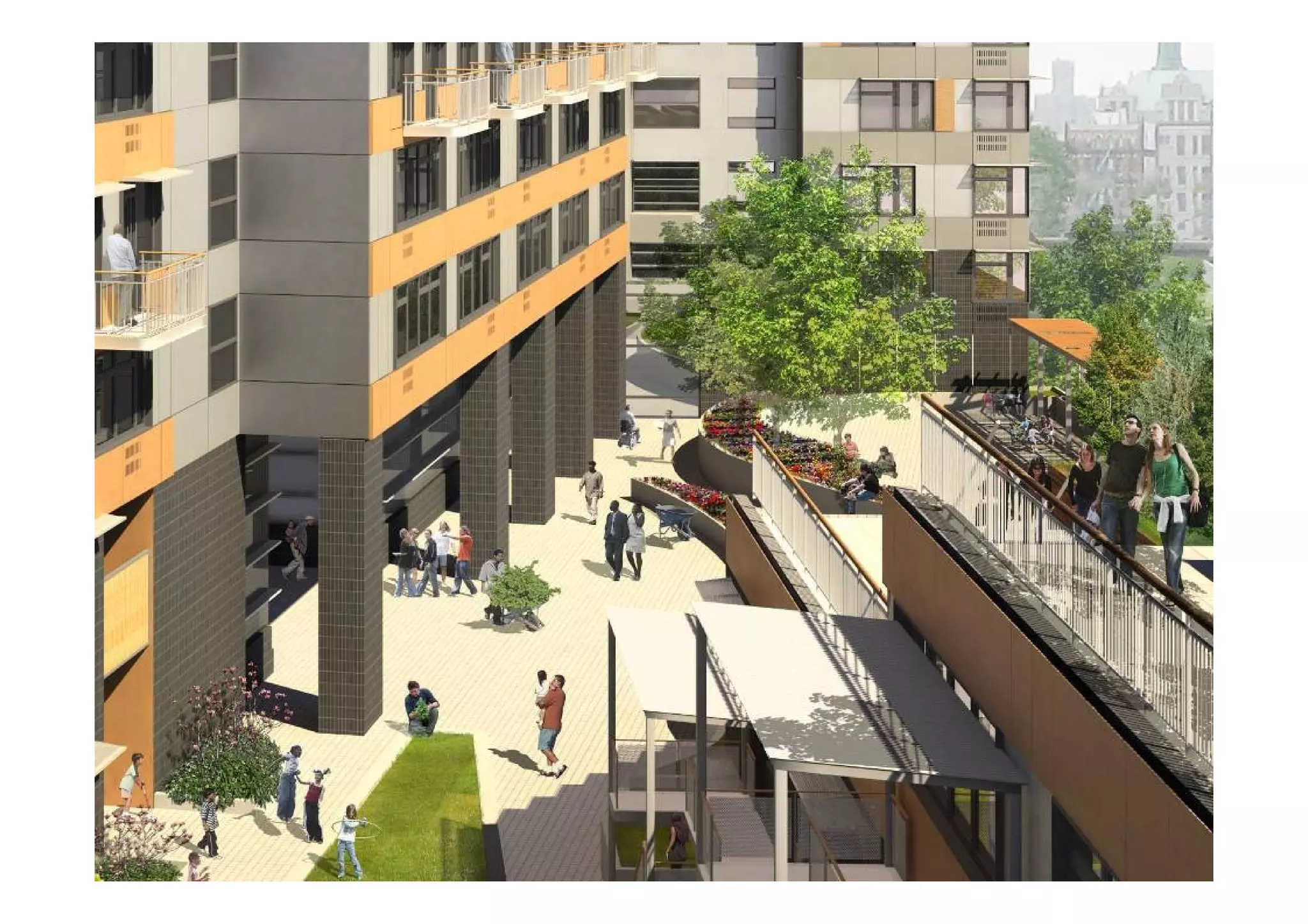 Both projects aimed to create mixed-use, sustainable developments through diverse and integrated designs. Jubilee Wharf in Britain included affordable housing, commercial space, and public areas on the ground floor. Via Verde in New York transformed a brownfield into low, middle and market-rate housing organized around shared green spaces. Both incorporated renewable energy sources, green roofs, and other eco-friendly features to reduce their environmental impact while fostering socially diverse communities.