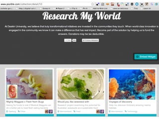 The document discusses the evolution of education toward a decentralized model, emphasizing the importance of personal learning networks and the need for institutions to support learners in navigating diverse environments. It highlights the concept of social curation as an essential process for discovery and sharing of digital artifacts for educational purposes. The author encourages individuals to become active participants and nodes within their networks for enhanced collaboration and learning.