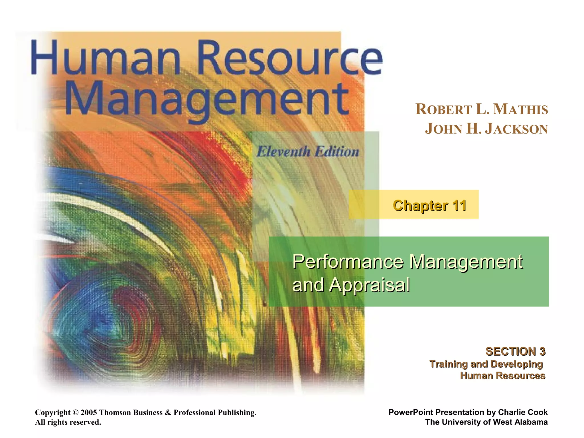 This document discusses performance management and appraisals. It begins by defining performance management as processes used to identify, encourage, measure, evaluate, improve, and reward employee performance. It then distinguishes performance management from performance appraisals. The document outlines the components of an effective performance management system and various methods for identifying and measuring employee performance, including setting performance standards. It also discusses developmental and administrative uses of performance appraisals and potential issues.