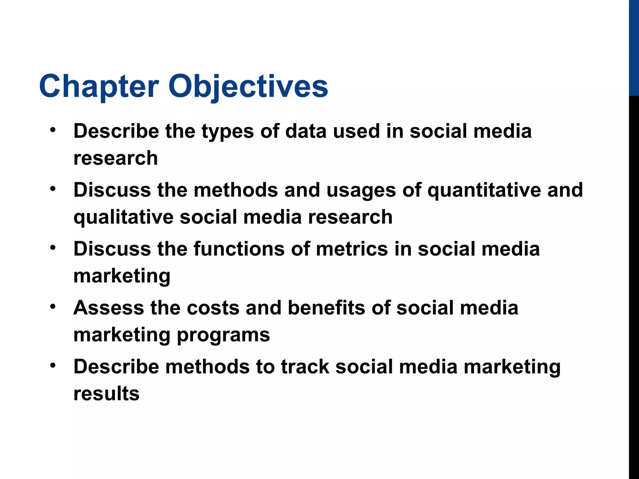 This document discusses social media marketing research and metrics. It describes qualitative and quantitative social media research methods like observational research, ethnography, netnography, monitoring, tracking, sentiment analysis and content analysis. It also discusses social media metrics like reach, frequency, site stickiness, clickthroughs, sales conversions and viewthroughs. Finally, it covers evaluating social media marketing using the DATA approach of defining goals, assessing costs and value, tracking results, and adjusting programs based on those results.