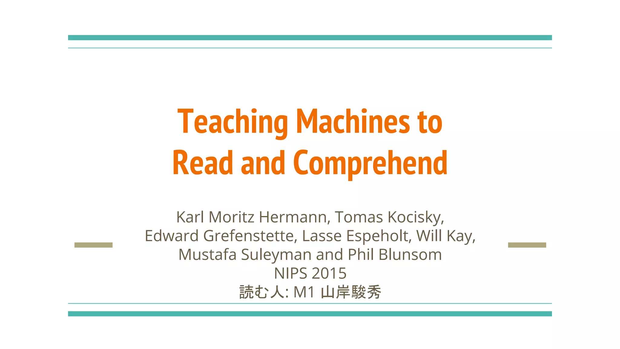 [ML論文読み会資料] Teaching Machines to Read and Comprehend