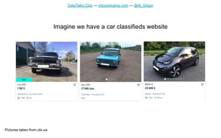 This document introduces machine learning and how it can be used to predict car prices based on characteristics like year, make, mileage, and other available data. It explains that an expert can use this data to determine a car's price, and a machine learning model can be trained to do the same by learning patterns in the data. The model would be trained on sample data that contains the features known about each car along with the target price value. It could then be used to predict prices for new cars by taking in their features. This allows applying the patterns learned during training to make useful predictions without needing expert knowledge.