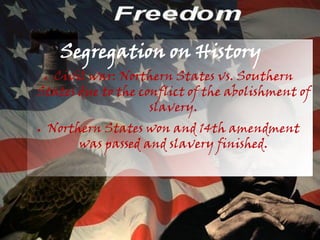 Martin Luther King Jr. fought against racial segregation in the United States through non-violent protests and civil rights movements. He led the bus boycott in Montgomery, Alabama and organized the March on Washington where he delivered his iconic "I Have a Dream" speech. Though he faced threats and was assassinated in 1968, King's message of equality and non-violence had a profound impact on dismantling segregation laws and advancing civil rights in America.