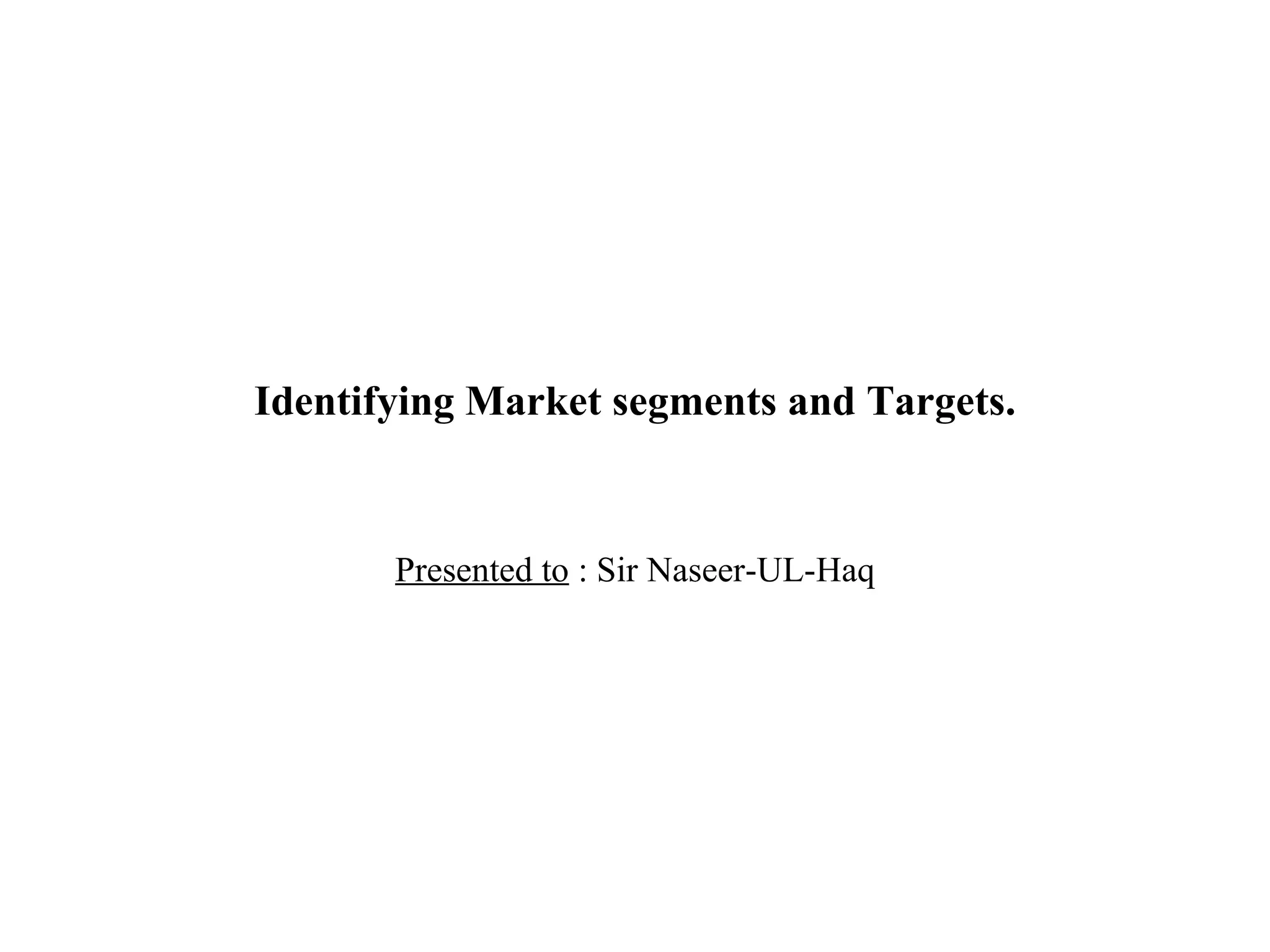 The document discusses various levels and approaches for market segmentation including mass marketing, micro marketing, segments, niches, and individual marketing. It describes different bases for segmenting consumer and business markets such as geographic, demographic, psychographic, and behavioral factors. These include variables like age, gender, income, lifestyle, usage occasions, benefits, and attitudes. The document also outlines criteria for effective segmentation, methods for evaluating segments, and considerations for selecting target markets.