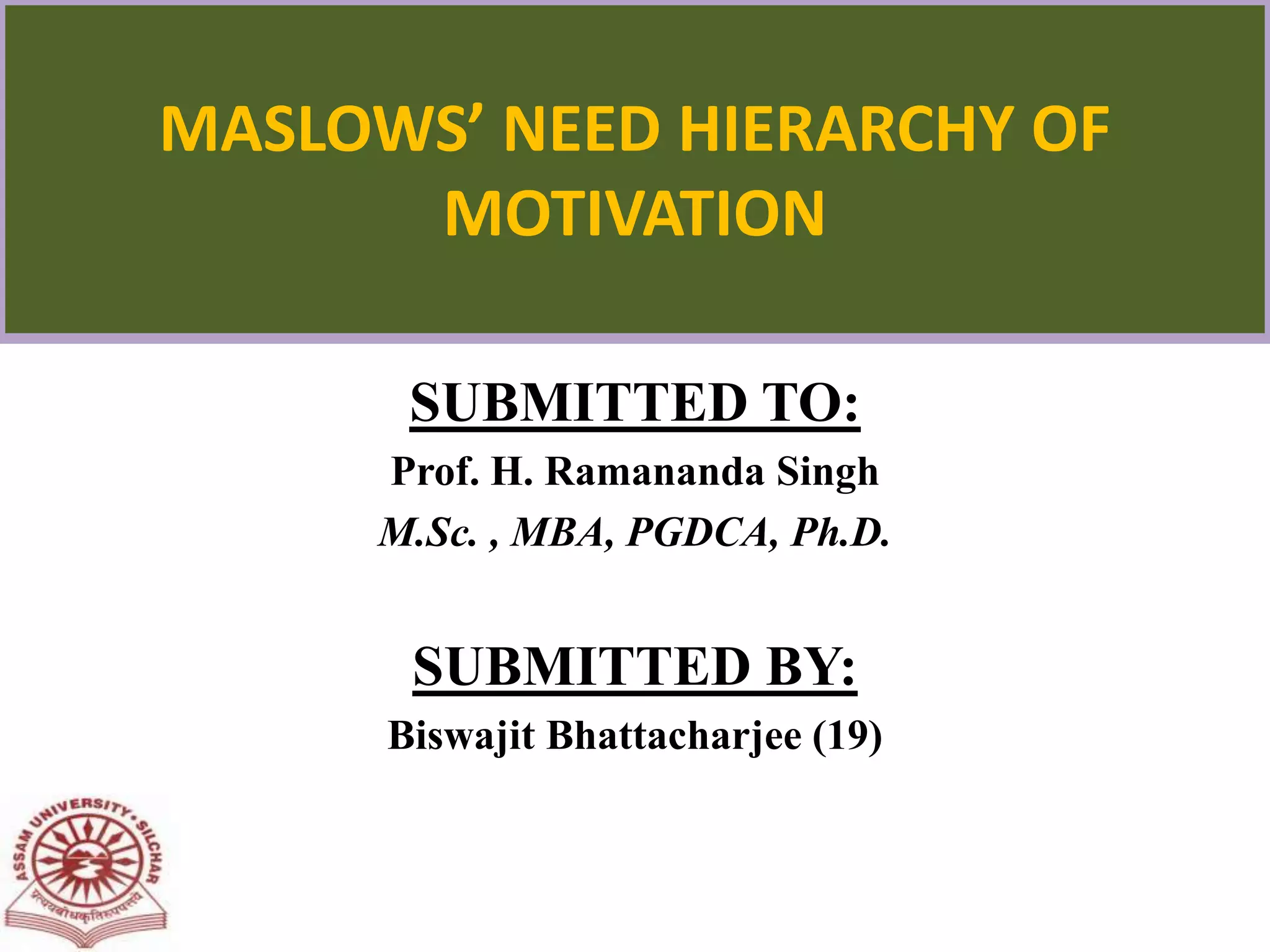 Abraham Maslow's hierarchy of needs theory proposes that people are motivated to fulfill basic needs before moving on to other needs. The hierarchy consists of physiological needs, safety needs, love and belonging needs, esteem needs, and self-actualization needs. Physiological needs are basic survival needs like food and water. Safety needs include security and stability. Once these are met, people seek love, friendship, and sense of belonging. Esteem and self-respect needs then motivate people. Finally, self-actualization involves fulfilling one's full potential. The theory assumes lower needs must be met before progressing to higher needs, though some criticisms note the order may not always apply rigidly.