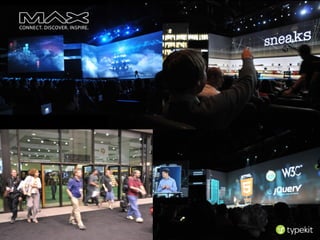 The document provides an overview of Adobe's mobile and web development capabilities, emphasizing GPU acceleration, video performance, and device feature support in Flash Player and AIR applications. It highlights the integration of various native app functionalities and advanced design tools such as Adobe Edge, which utilizes HTML5, CSS, and JavaScript for interactive design. The document also shares details on features available in recent updates, including improved performance and access to device capabilities.