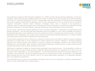 MMX does not undertake to update our forward-looking statements unless required by law. This presentation is neither an